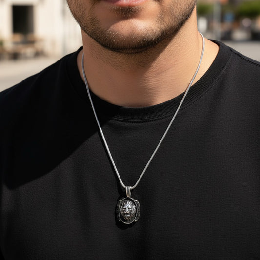 925 Zilver Herenketting met Leeuw Hanger en Microstenen