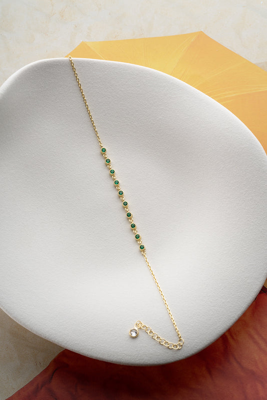 Fijn Armbandje met Smaragdgroene Steentjes – Verguld
