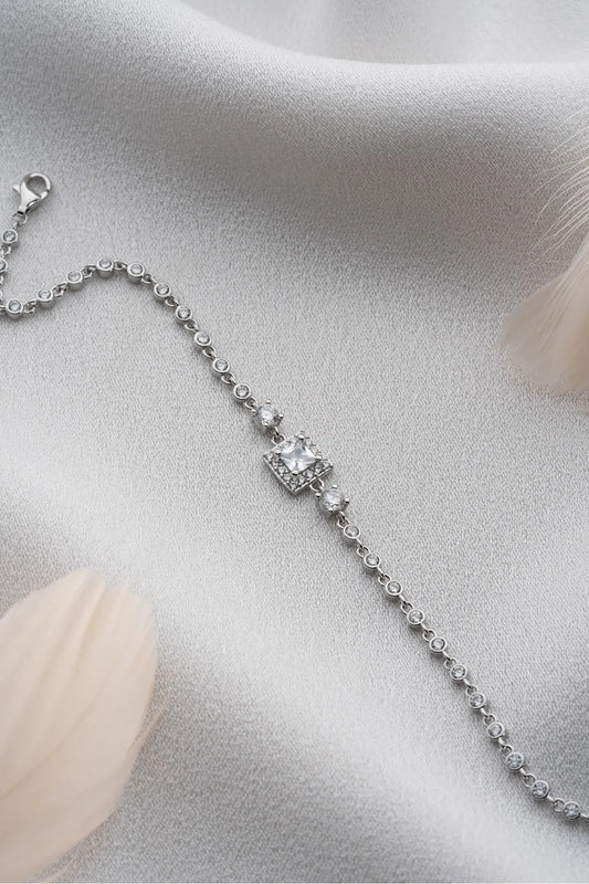 925 Sterling Zilveren Armband met Vierkante Steen en Pavé Design