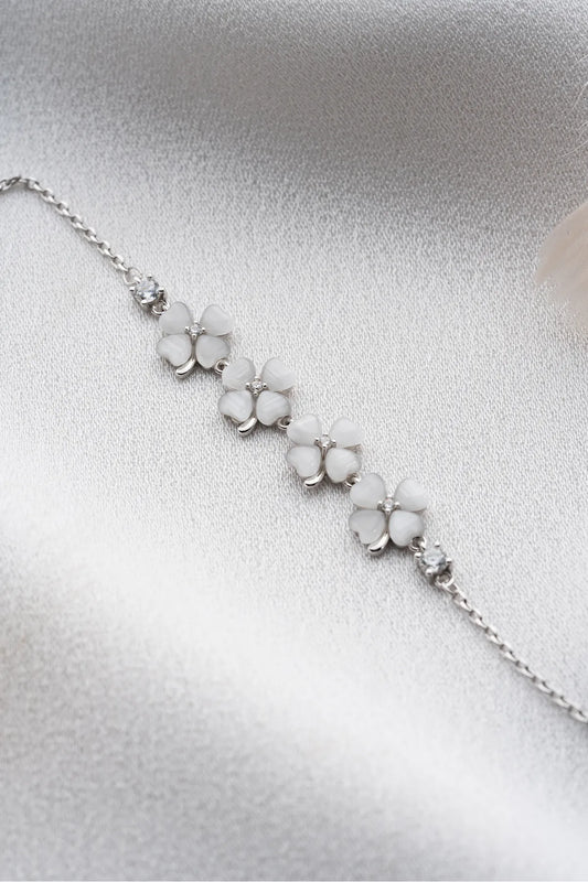 925 Sterling Zilveren Armband met 4 Moeder-van-Parel Klavertjes