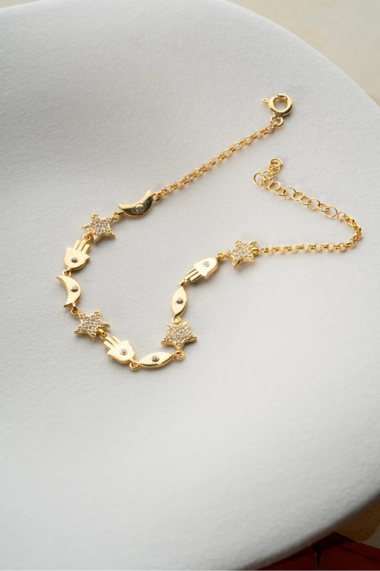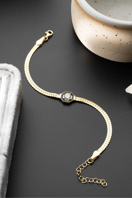 925 Sterling Zilveren Armband met Goudlaag & Zwarte Emaille