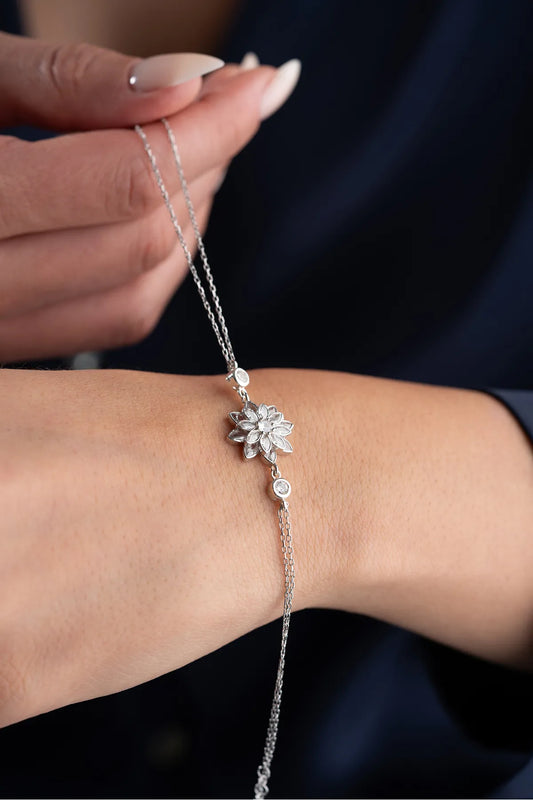925 Sterling Zilveren Armband met Witte Zirkonia en Lotus Design