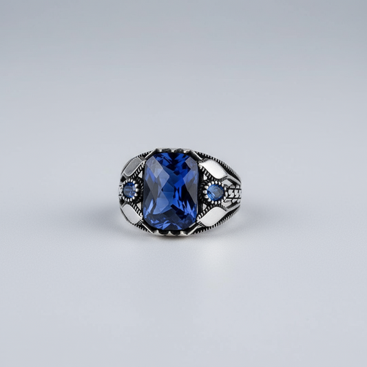 Aanbieding925 Zilveren Herenring met Blauwe Steen