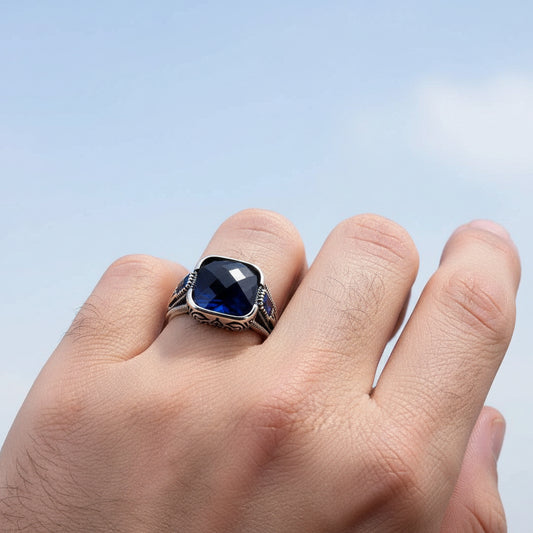 925 Zilveren Herenring met Donkerblauwe Steen