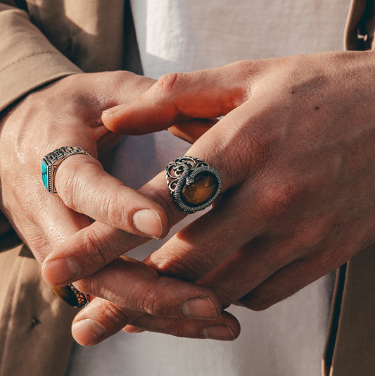 925 Sterling Zilveren Herenring met Turquoise Steen
