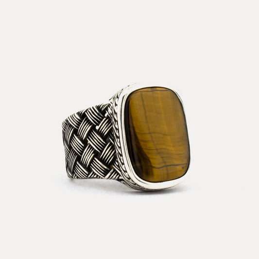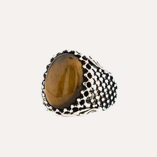 925 Zilveren Herenring Met Tijgeroog Steen ORTBL178