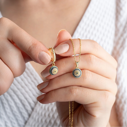 Boze Oog Ketting & Oorbellen Set – 925 Sterling Zilver
