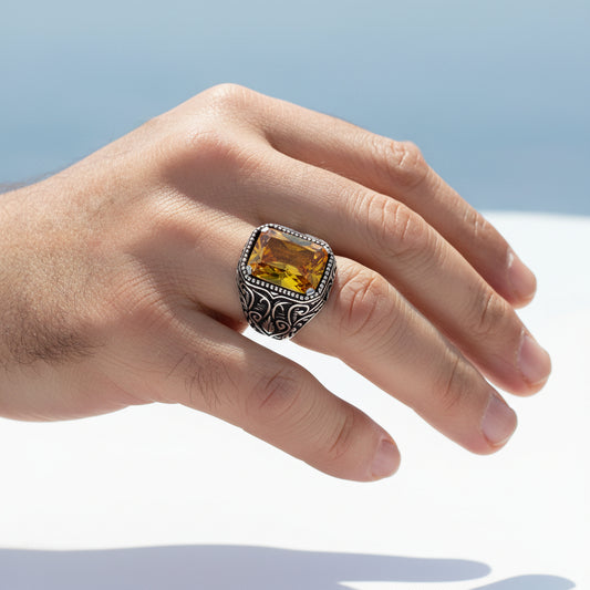 Herrenring aus 925er Sterlingsilber mit gelbem Zirkonstein