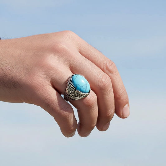 Silberner Herrenring mit ovalem türkisfarbenem Stein – handgefertigtes Design