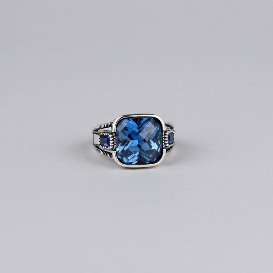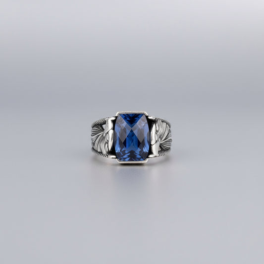 925 Zilveren Herenring met Adelaar Motief en Blauwe Steen