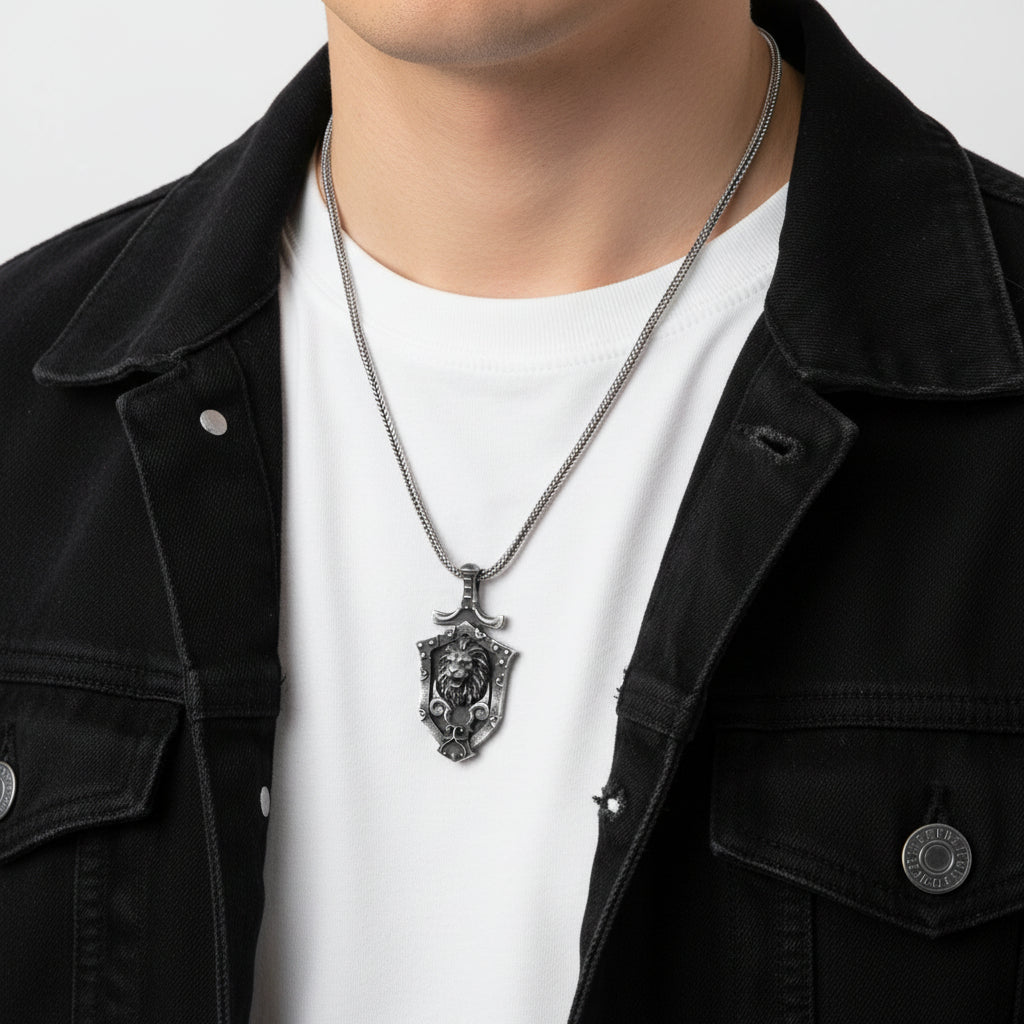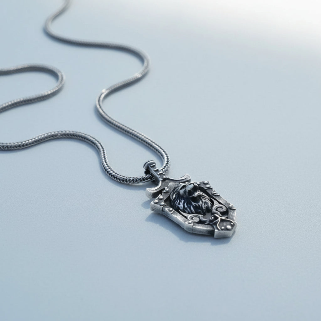 Der Schild – ein Symbol des Schutzes – kombiniert mit dem Löwen, einem Zeichen der Stärke und des Stolzes. Dieser Anhänger aus 925er Sterlingsilber ist ein stilvolles und kraftvolles Schmuckstück.