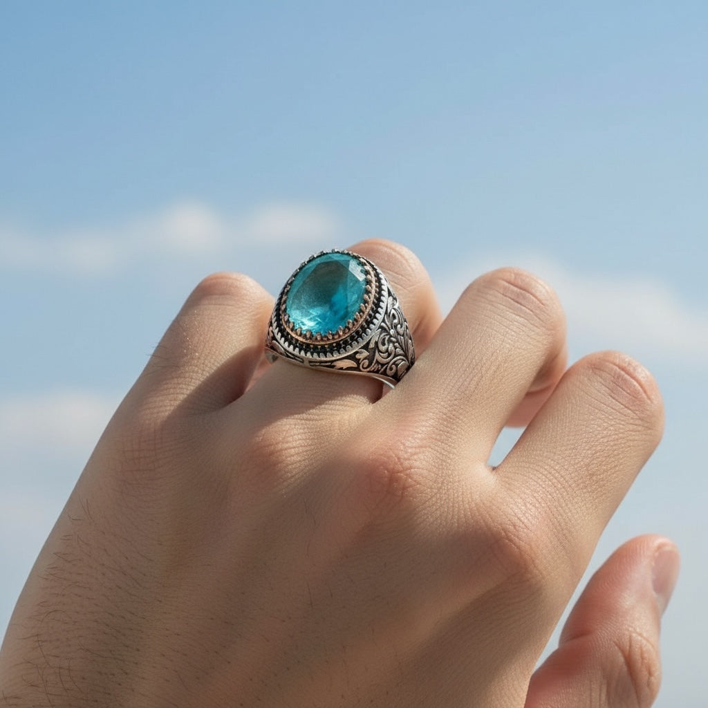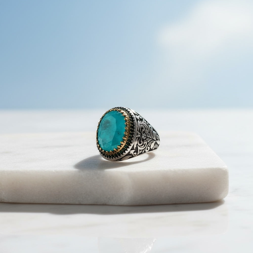 Herrenring mit Paraiba -Stein - 925 Sterlingsilber