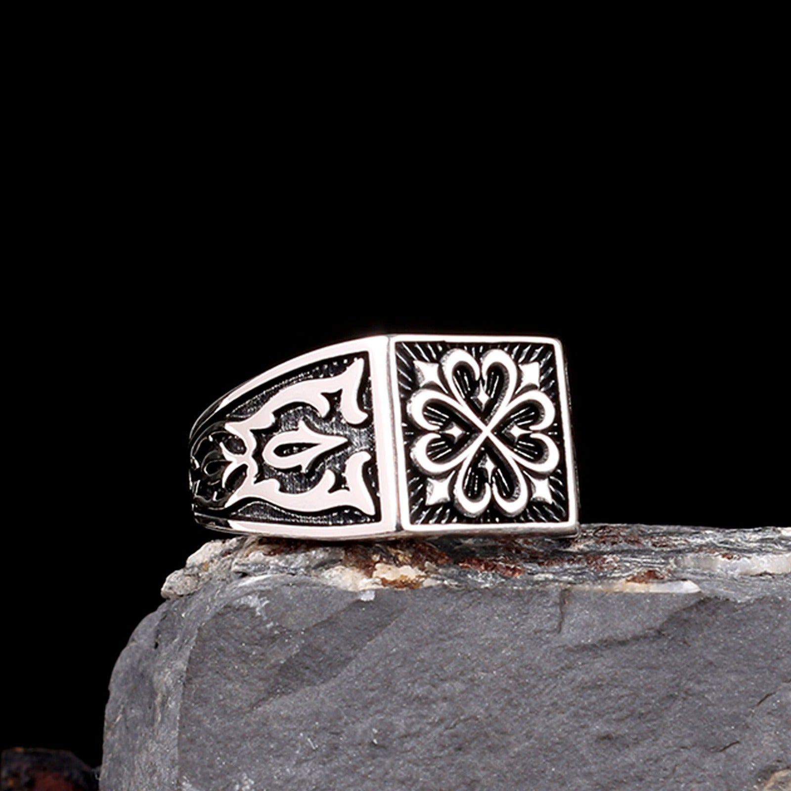 Herrenring mit Kompassstern von 925 Sterlingsilber