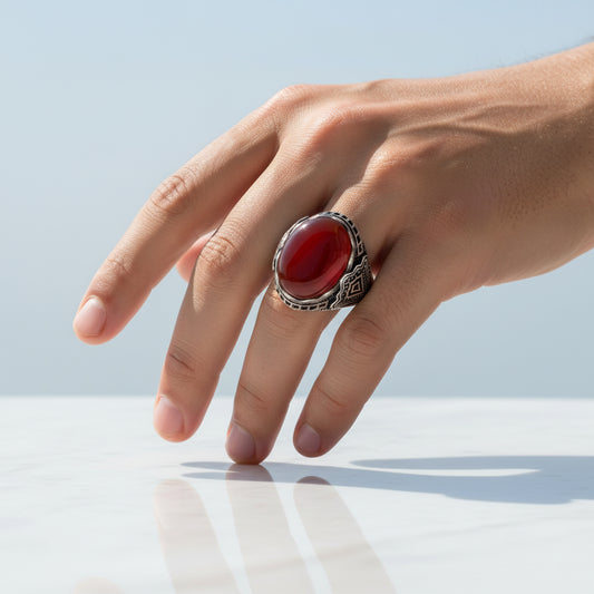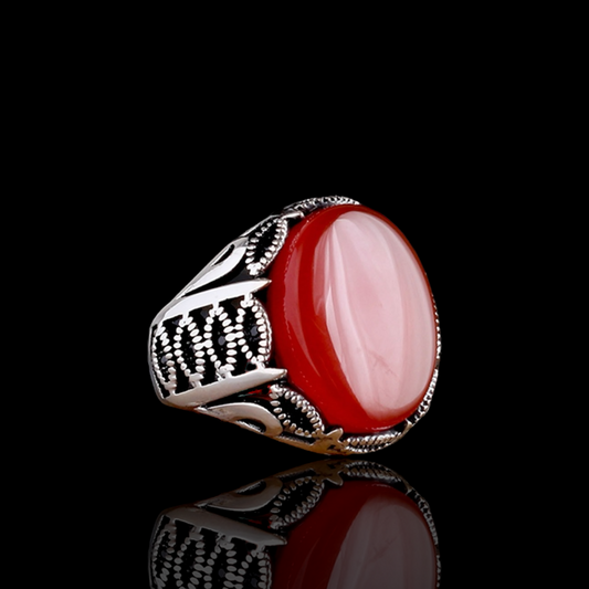 925 Silver Mens Ring With Red Agate Stone ORTBL170