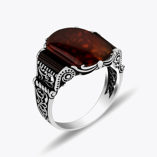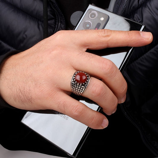925 Silver Men's Ring with Red Agate Stone LMR266