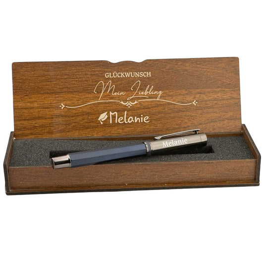 Personalized ballpoint pen with engraved wooden box for teacher or master