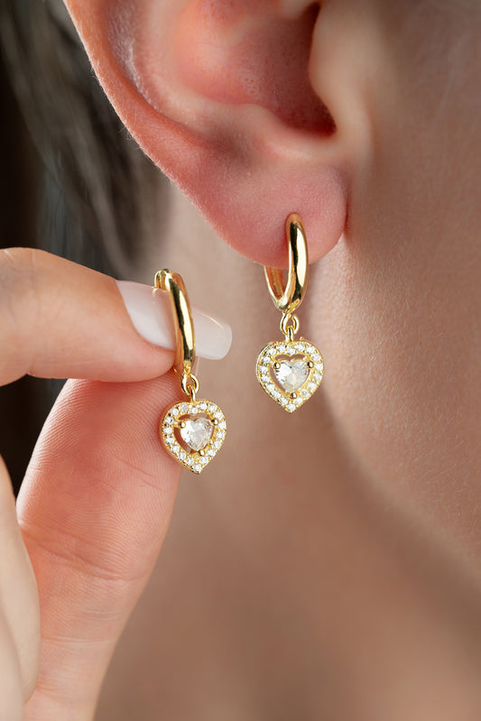 Heart Earrings - Heart -shaped pendant in gold or silver
