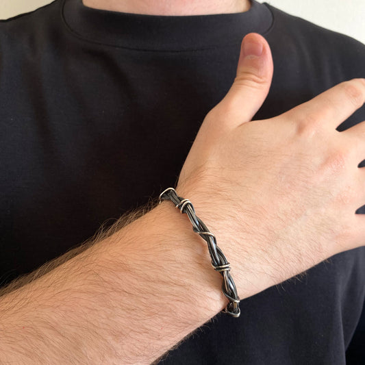 Naxio Elegant Silver Embroidery Bracelet (10mm)