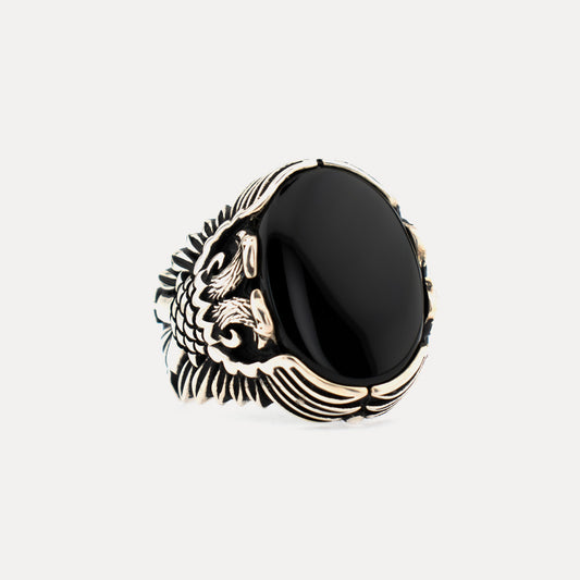 925 Silver Men's Ring with Green Agate Stone LMR341