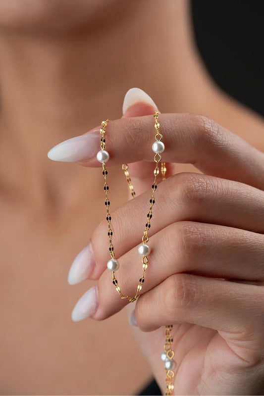 Necklace with Pearl & Flower - 925 Silver Gold Plated