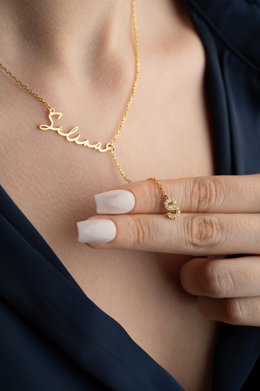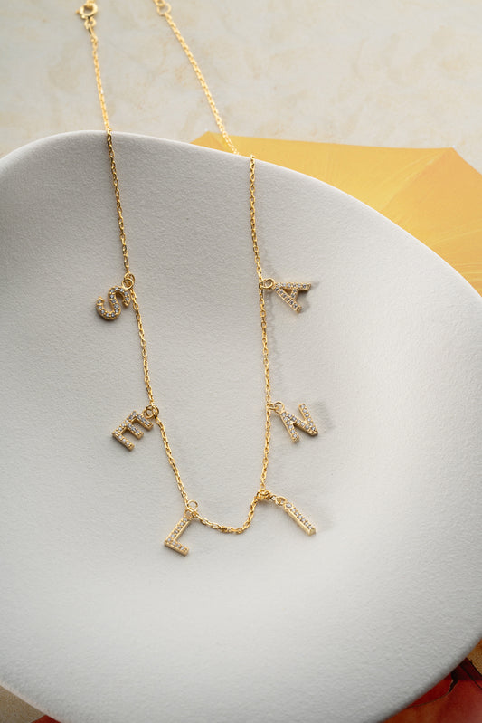 Balloon Letter Necklace - 925 Silver - With Zirconia Stones