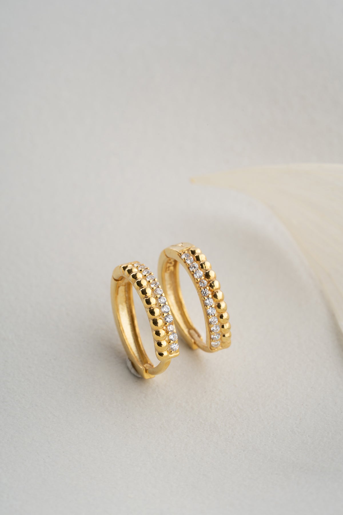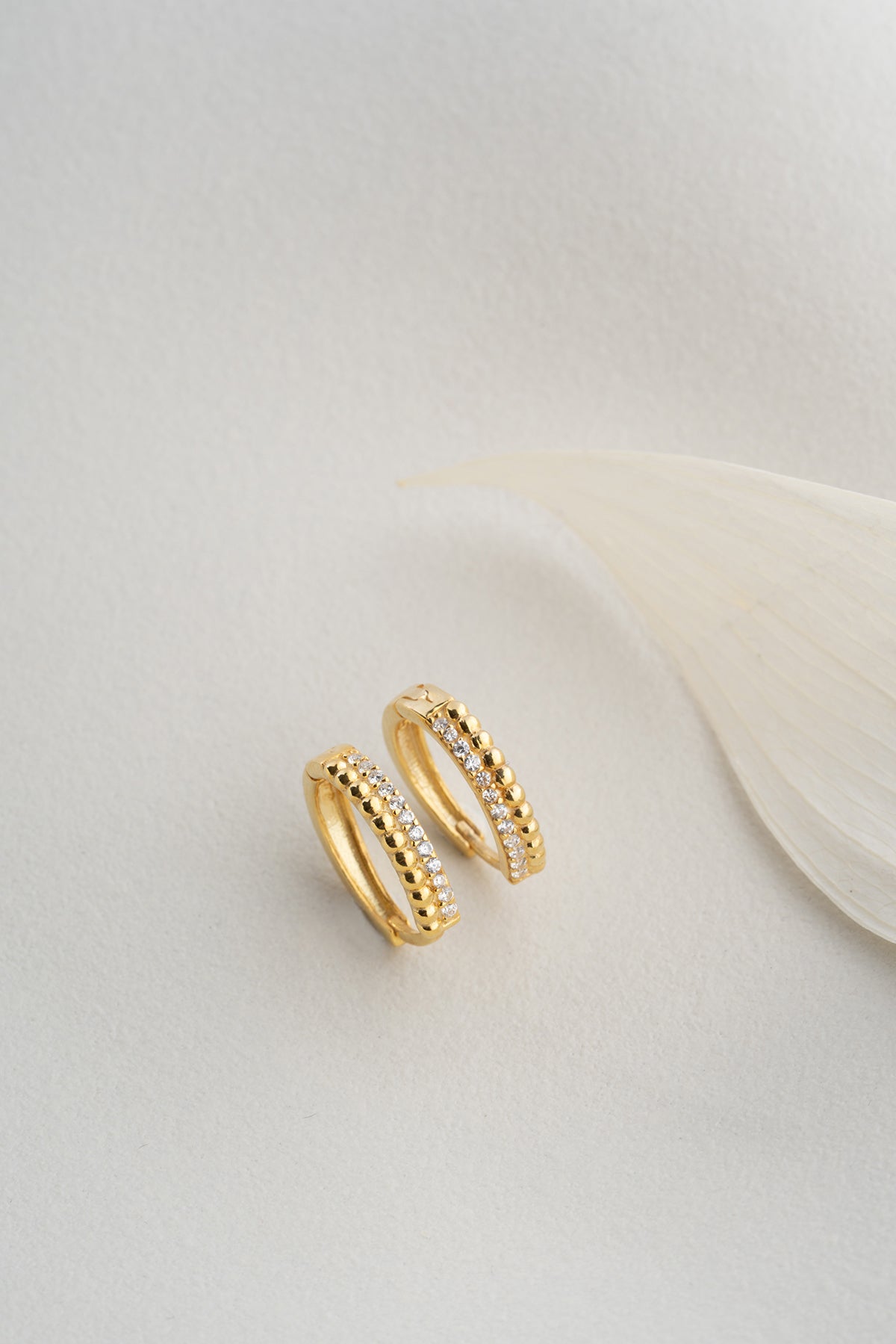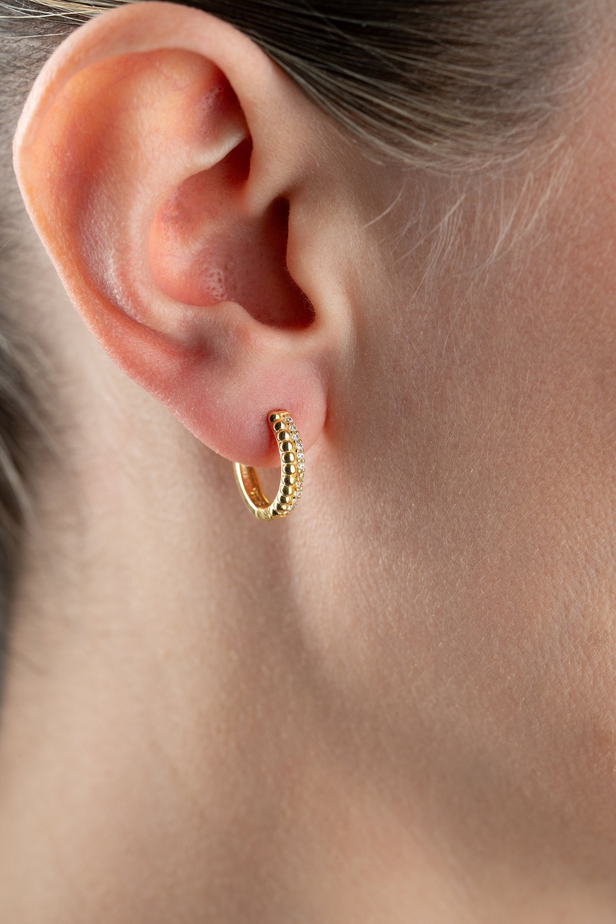 These stylish hoop earrings are crafted from 925 sterling silver and adorned with a row of metal beads and sparkling stones. A perfect combination of simplicity and elegance, suitable for any occasion.