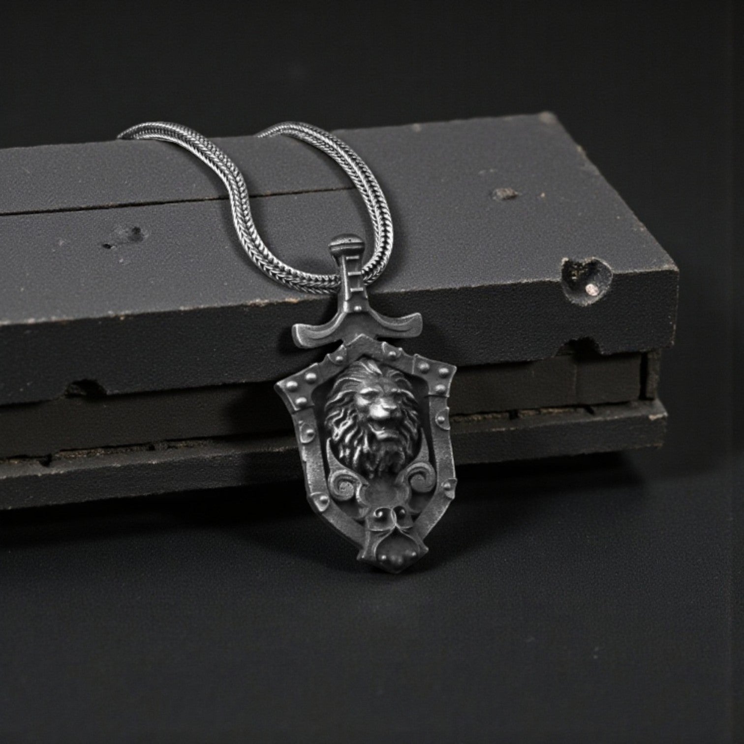 The shield—a symbol of protection—combined with the lion, a sign of strength and pride. This 925 sterling silver pendant is a stylish and powerful piece of jewelry.