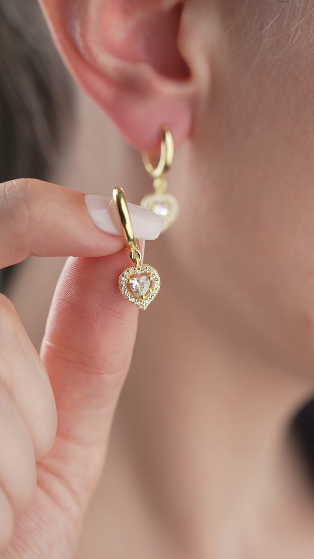 Heart Earrings - Heart -shaped pendant in gold or silver