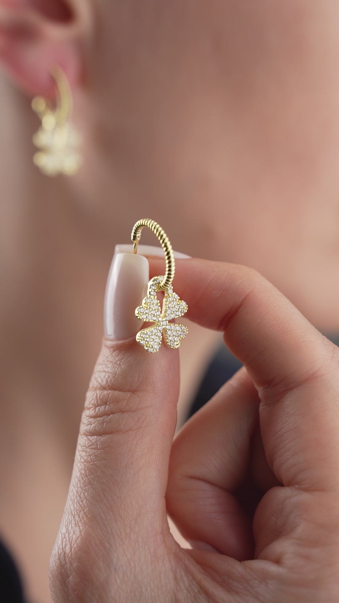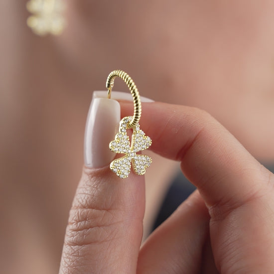 These stunning four-leaf clover earrings combine luck and style. The stone-encrusted leaves sparkle with every movement, making them perfect for everyday wear or festive occasions.