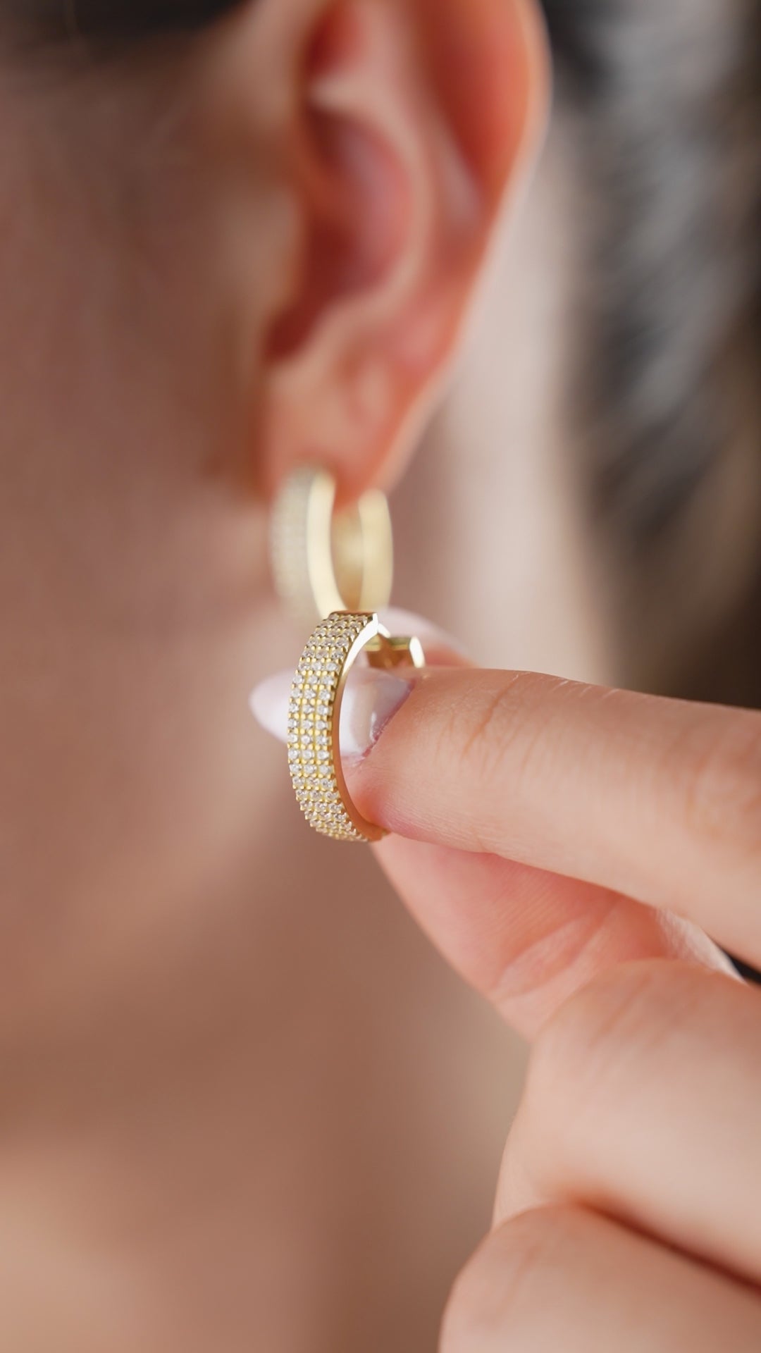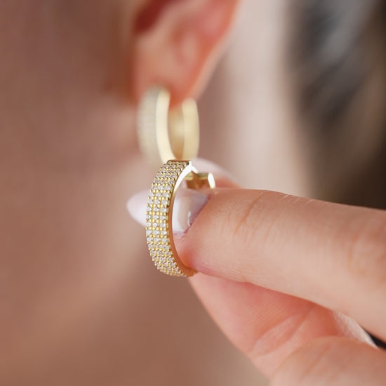These SparkleHoop 925 earrings are crafted from gold-plated sterling silver and finished with three rows of sparkling cubic zirconia. Perfect for both everyday wear and special occasions.