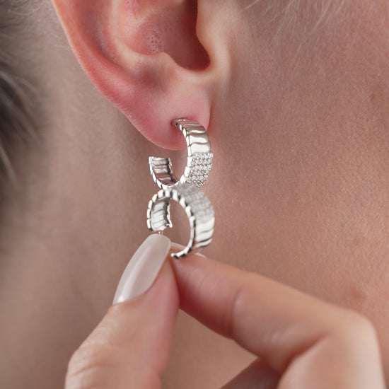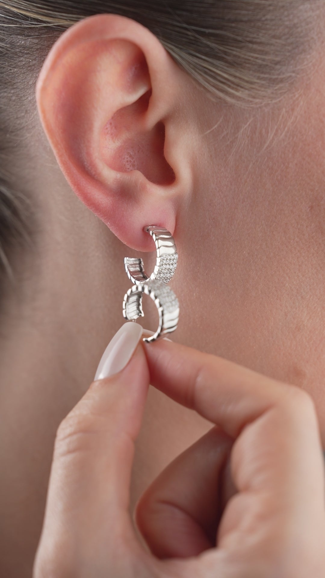 These modern, ribbed earrings are finished with sparkling cubic zirconia for a timeless look. Crafted from 925 sterling silver, they're perfect for everyday wear or special occasions. Elegant, stylish, and comfortable.