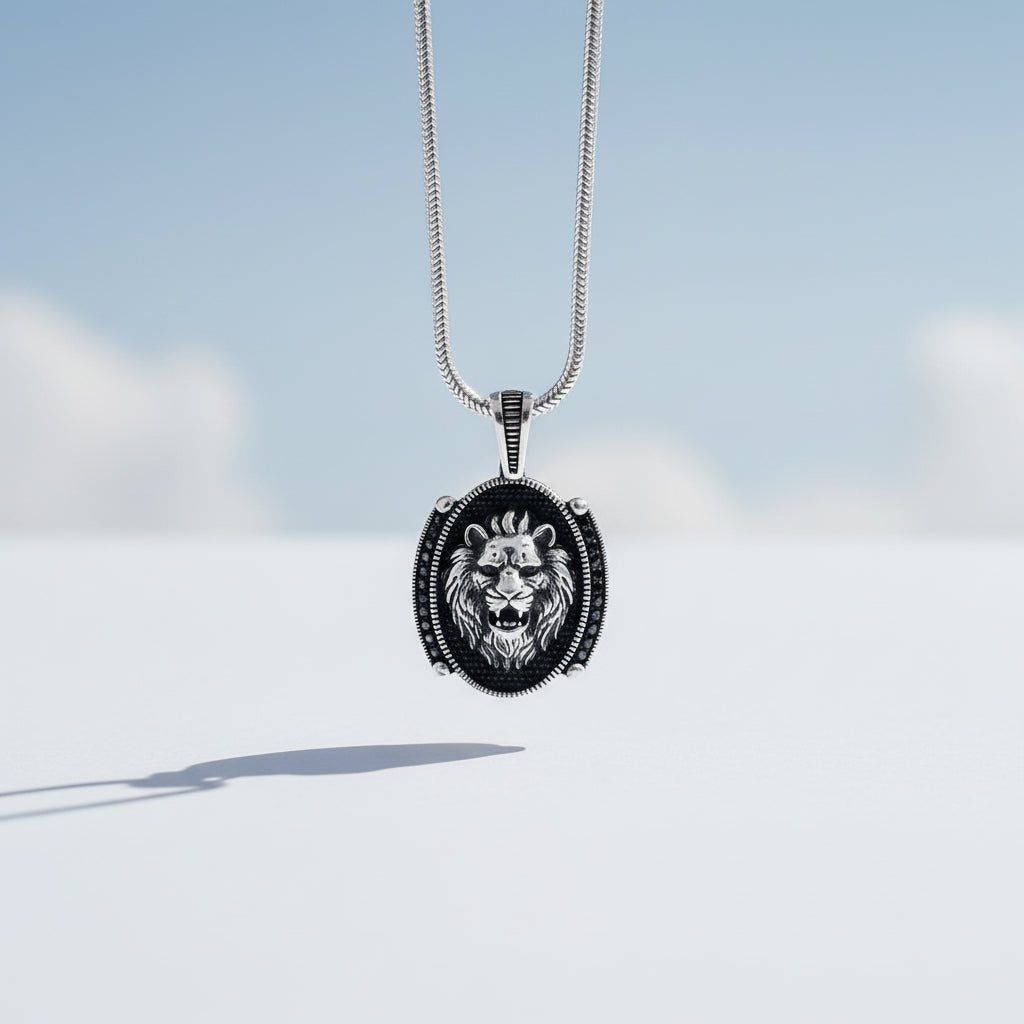 Stoere ketting met leeuwensymbool – staat voor kracht en leiderschap.