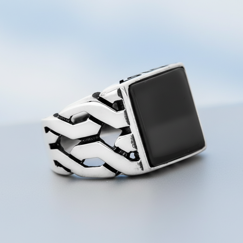 925 Zilveren Herenring Met Onyx Steen