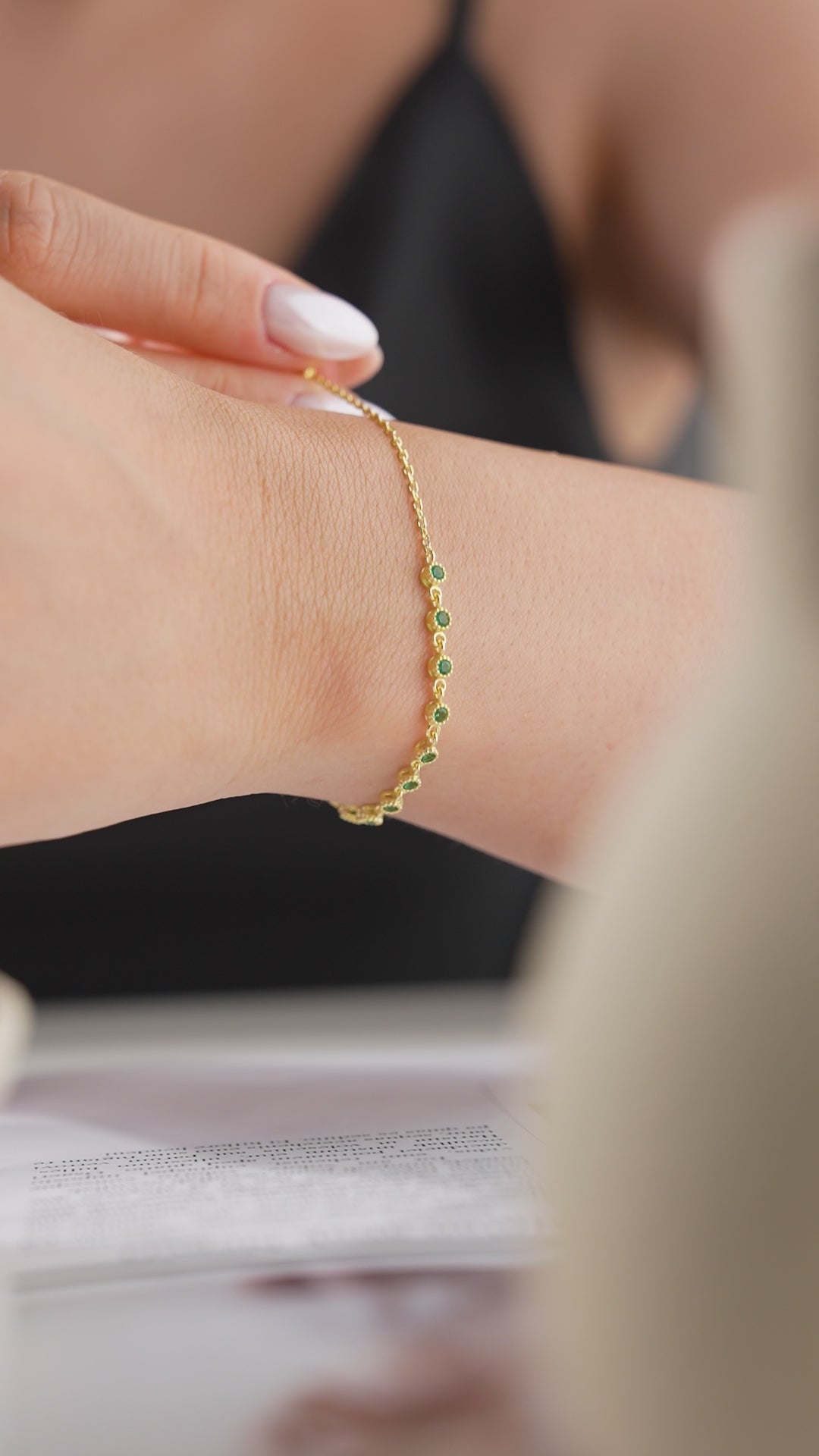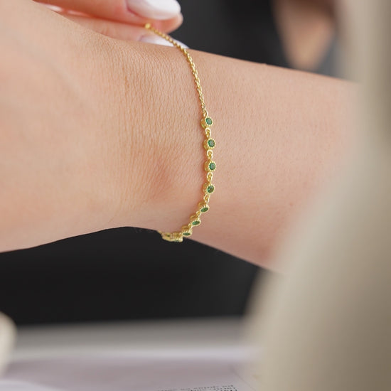 Fijn Armbandje met Smaragdgroene Steentjes – Verguld