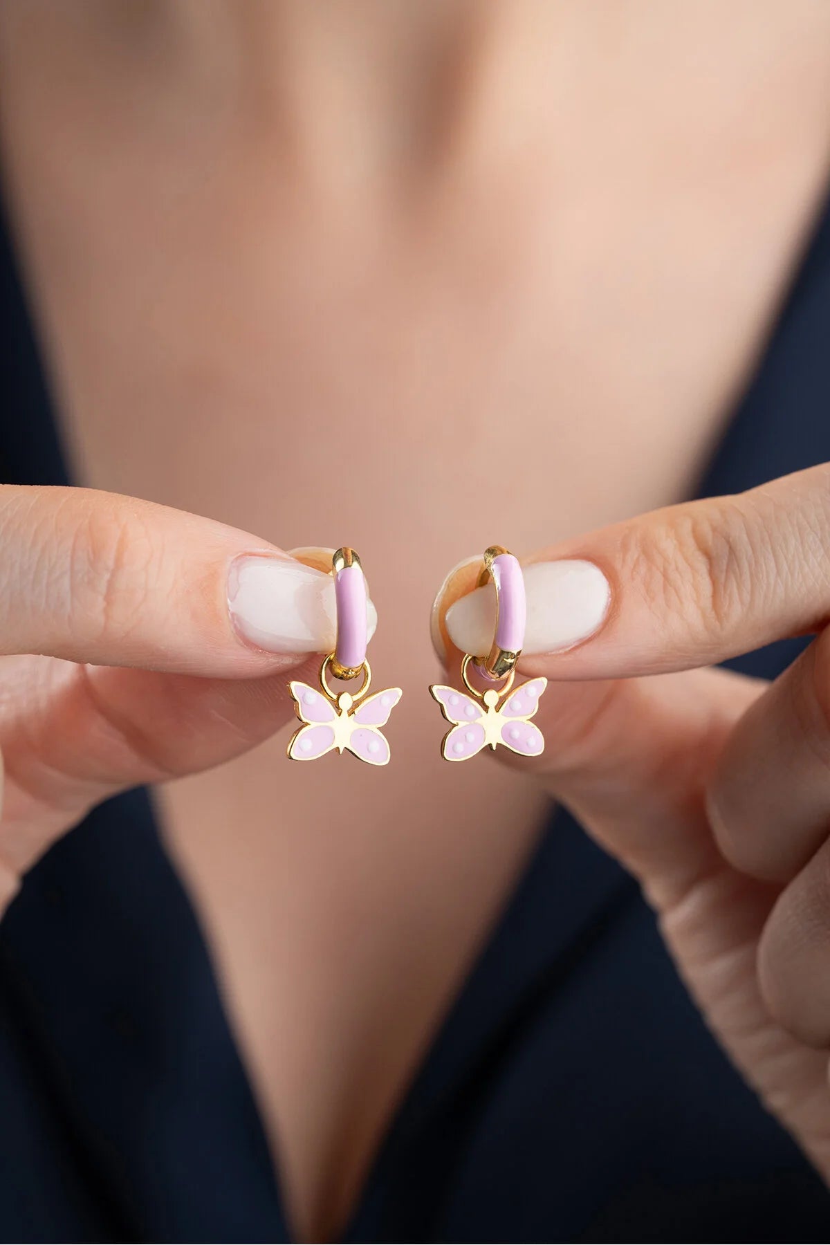 Kinderoorbellen met Vlinder – 925 Sterling Zilver & Emaille
